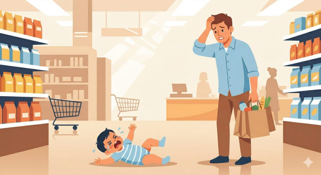 | 床に寝転んで泣く | すぐに抱き上げて要求をすべて鵜呑みにする | 少し離れて見守り、落ち着いてから「悲しかったね」と声をかける |