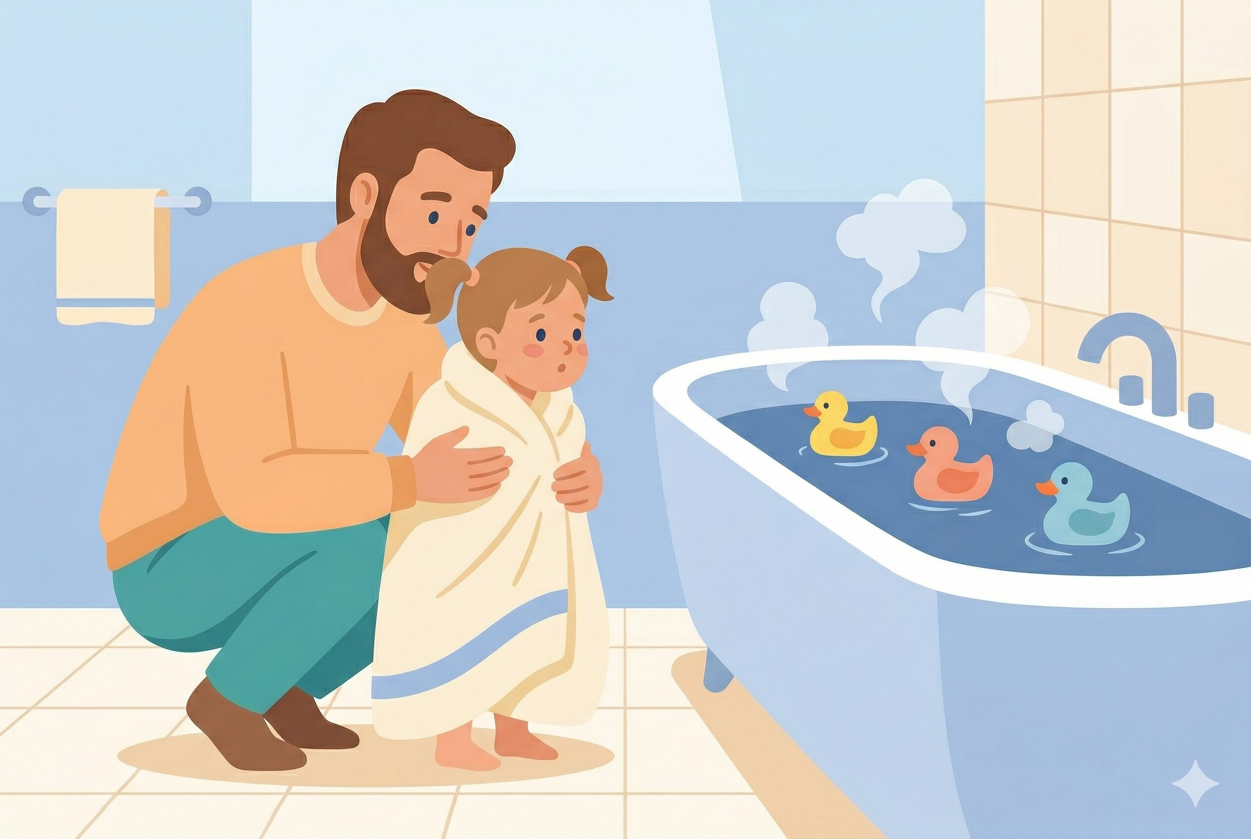 - お風呂のとき → 「パパとママ、どっちと一緒に入る?」