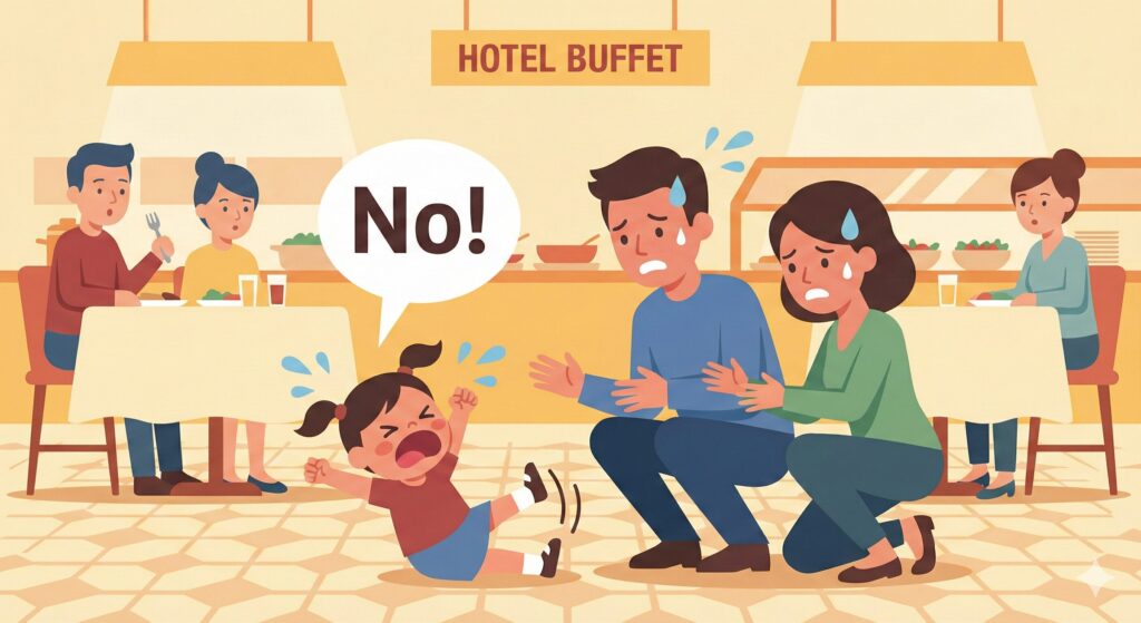 ただ、ブッフェ会場ではイヤイヤ期が爆発。
