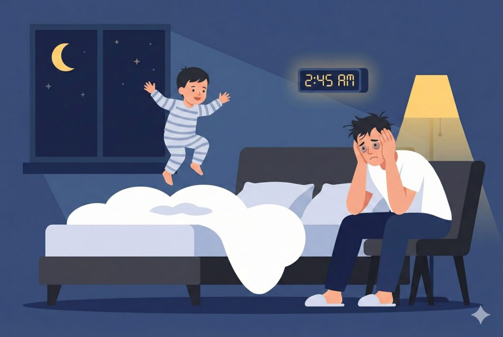 翌朝は寝不足で機嫌最悪、という地獄を見ました。