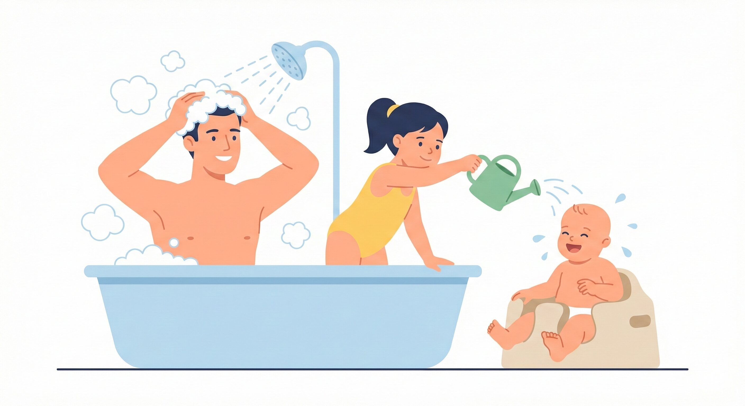 我が家では、時間差ではなく「3人同時」に入って一気に済ませています。