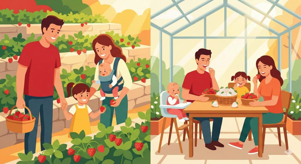 白苺は上品な甘さで本当に美味しく、思わず自分たちへのお土産用にも購入してしまいました。少しお高めな料金設定ですが、「未就学児は無料」なので、我が家のような小さな子供がいる家庭にとっては、実質かなりお得に楽しめます。