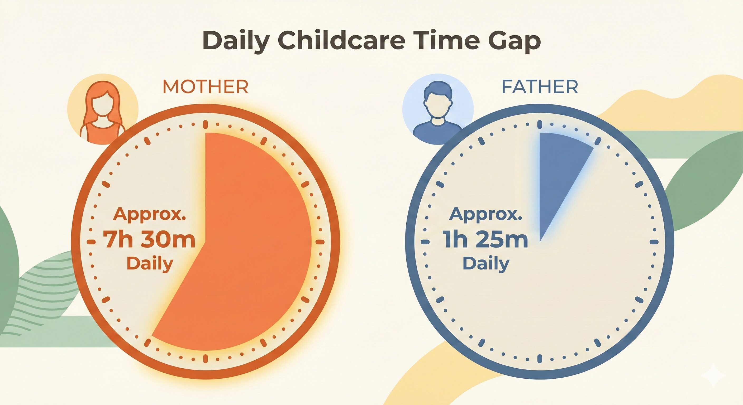 | 1日の育児時間 | 約7時間30分 | 約1時間25分 |