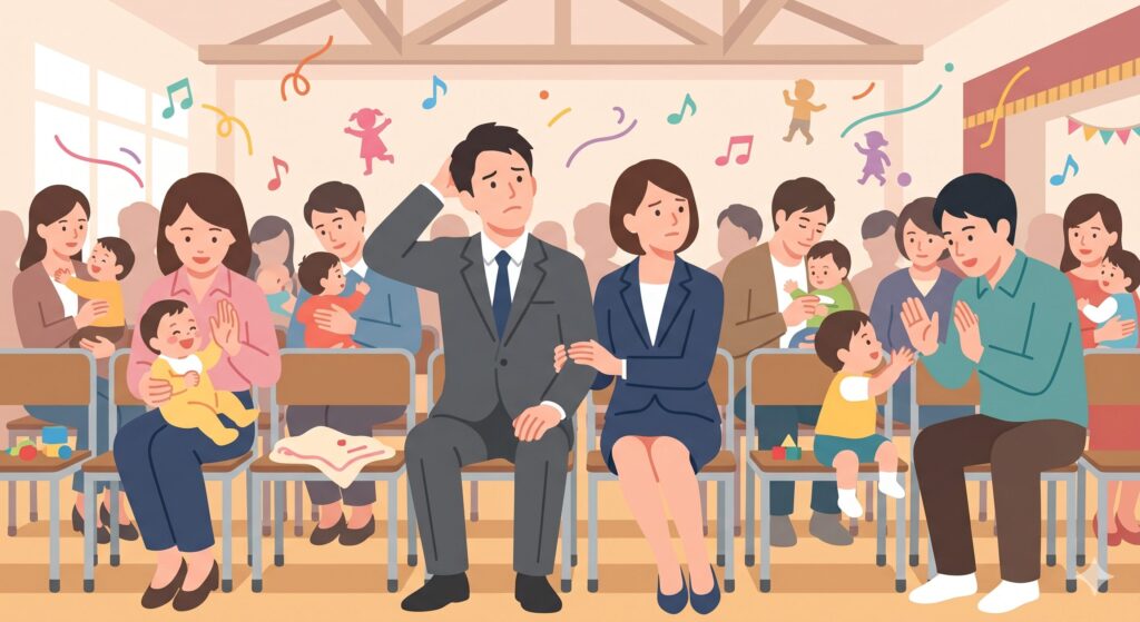 よくよく考えれば、主役は2〜3歳の子供たちです。式中にじっと座っていられるわけもなく、会場のあちこちで「わちゃわちゃ」とした賑やかな声が響き渡っていました。これなら、ここに次女が1人追加されたところで誰も気にしなかったはず。「なんだ、一緒に連れてくればよかったな…」と、少しだけ後悔した瞬間でした。