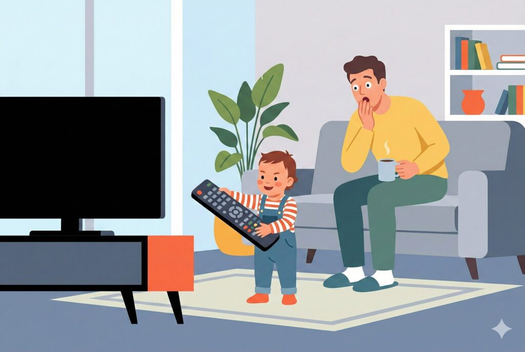 ふと気づくと、娘がリモコンをテレビに向け、真剣な眼差しでボタンを押していたのです。