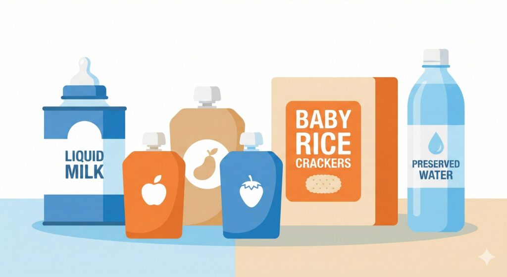 | おやつ | 適量 | 赤ちゃんせんべい、ボーロ、ラムネなど。避難所での「ぐずり対策」として必須。 |