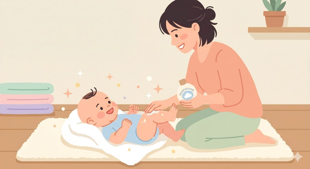 ただし、赤ちゃんの皮膚の厚さは大人の約半分。非常にデリケートなので、沐浴後の「保湿」は絶対に欠かせません。国立成育医療研究センターの研究でも、新生児期からの保湿がアトピー性皮膚炎の発症リスクを下げる可能性があると報告されています。